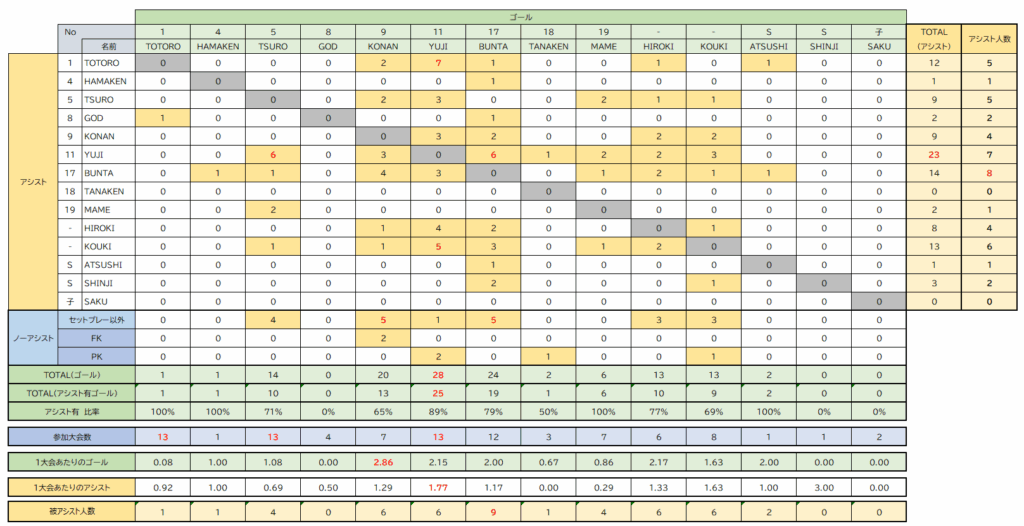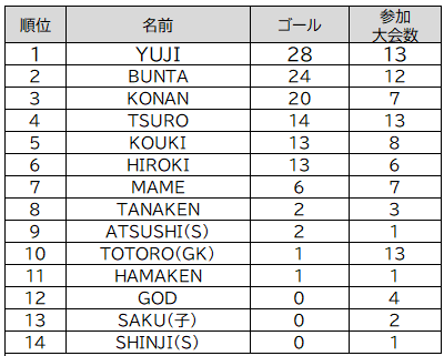 【得点王】 YUJI(16年連続16回目)