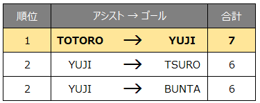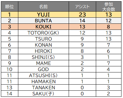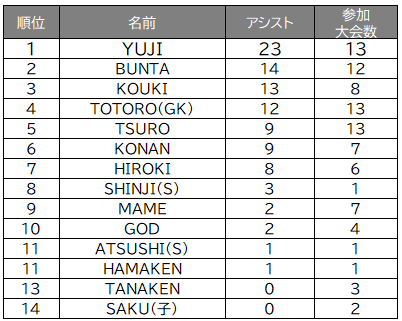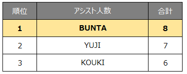 【アシスト王】 YUJI(5年連続5度目)