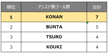 【ノンアシストゴールランキング】 ※アシストのないゴール数